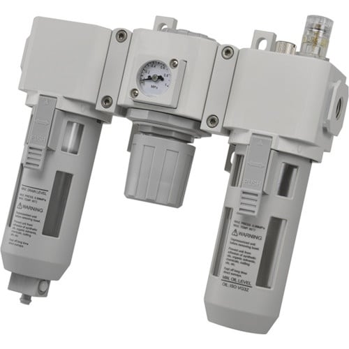 フィルター・レギュレーター・ルブリケータをコンパクトに組み合わせ、空気の清浄と圧力の調整および、空気圧機器への潤滑油を供給します。