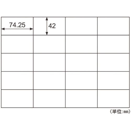 面付:20 | ラベルサイズ(mm)縦:42 | ラベルサイズ(mm)横:74.25 | 紙厚さ(mm):0.15 | ラベルのみの厚さ(mm):0.…