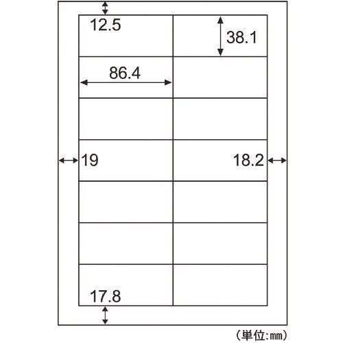 面付:14 | ラベルサイズ(mm)縦:38.1 | ラベルサイズ(mm)横:86.4 | 紙厚さ(mm):0.15 | ラベルのみの厚さ(mm):0…