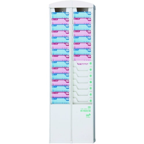 抗菌仕様のタイムカードラックです。10人・15人・30人用の壁掛けタイプ抗菌カードラック。 |