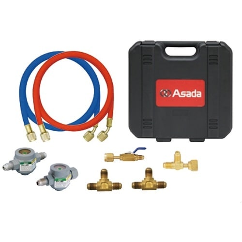フロン再生装置「エコサイクル」を使用した冷媒配管の共洗い洗浄のためのキットです。同じ冷媒を使用するため、配管内の冷凍機油を簡単に洗浄できます。旧冷媒機器からHFC機器へ転換時の既設冷媒配管の洗浄。 |