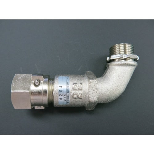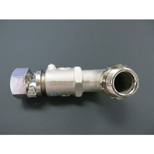 雄ねじ部分が90°に曲がった耐圧防爆構造パッキン式ケーブルグランドです。危険箇所で使用する耐圧防爆構造パッキン式ケーブルグランドです。