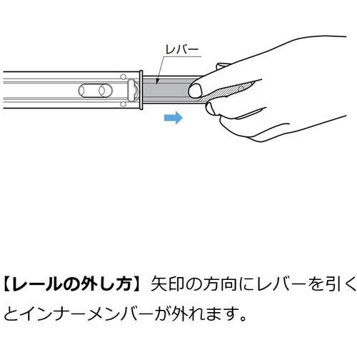 インナーメンバーを完全に引き出せる3段引のスライドレールです。レバー操作でインナーメンバーを取り外せます。 |