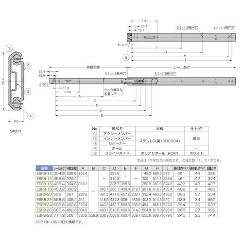 スガツネ工業 SUGATSUNE (190111333)ESR8−24ステンレス鋼製スライドレール A017-8359
