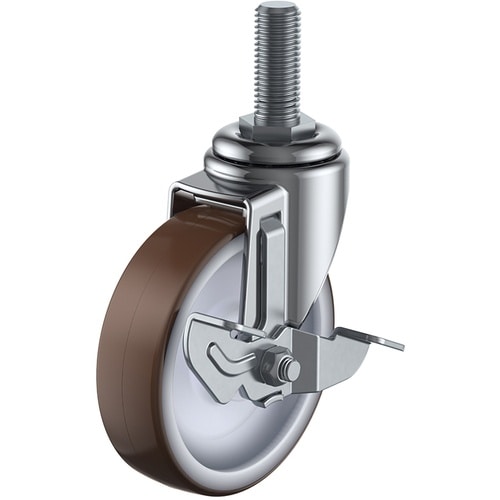 ユーエイキャスター ユーエイ ねじ込み式 自在 キャスター ウレタン 車輪径100mm ストッパー付き Eタイプ ET−DS型 ネジ寸法M16×40ピッチ2 A017-8387