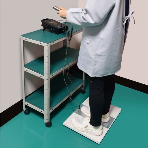 F−110、F−110−5と組み合わせることで静電気対策用履物の抵抗値測定が可能です。 |