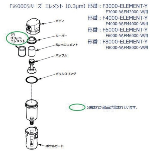 その他仕様:部品(エアフィルタ用エレメント組立) | セット付属内容:0.3μmエレメント(1ヶ) | 単位:1個