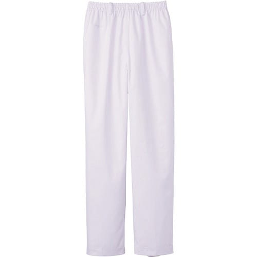 給食サービスにおすすめのストレートパンツです。ウエスト総ゴム、ファスナーなし、ノーポケット仕様です。