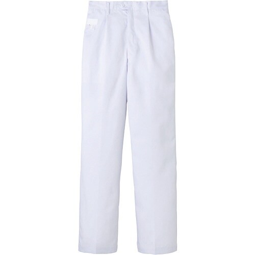 給食サービスにおすすめのストレートパンツです。ウエスト後ゴム、前開き金属ファスナー、両脇シーム、右後外ポケット付きです。 |
