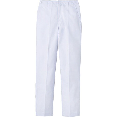 異物混入対策仕様のスタンダードの常温作業向けストレートパンツです。前開き金属ファスナー、両脇スラッシュ、右後片玉縁ポケットです。 |