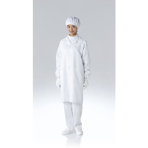 クリーンルーム用ウエアです。オープンカラー、フロントホック止めのシンプルなコートです。コートタイプの防じん服です。 来客者用、見学者用に最適です。 |