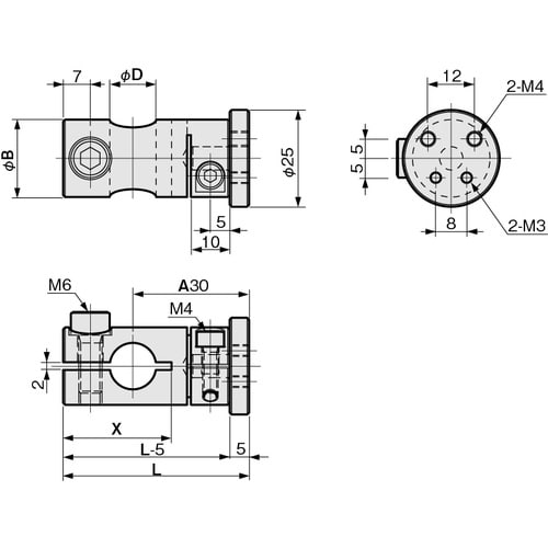 適合シャフトD:φ12 | 材質・仕上げ:アルミ A2017 | 単位:1個
