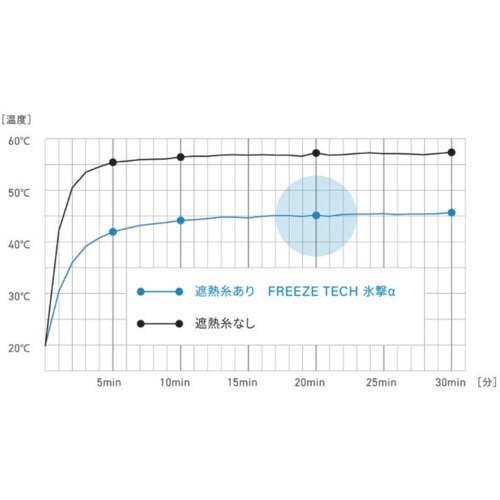 先進冷感繊維と先進プリント技術により衣服自体が温度をコントロールします。温度調節繊維:世界で初めて開発に成功した「温度調節繊維コンフォーマ」を生地素材に採用しています。 |