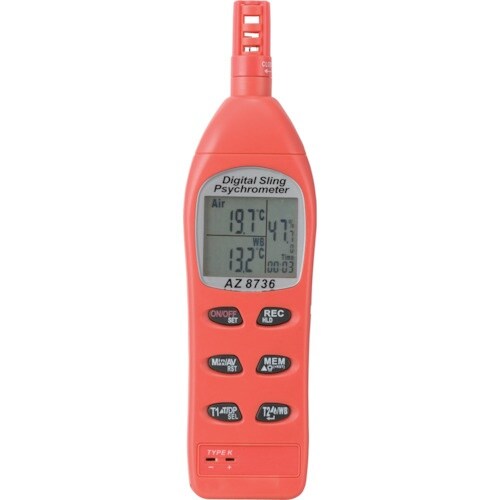 一台で温度、湿度、露点温度、湿球温度とK熱電対温度2チャンネルが測れます。 |