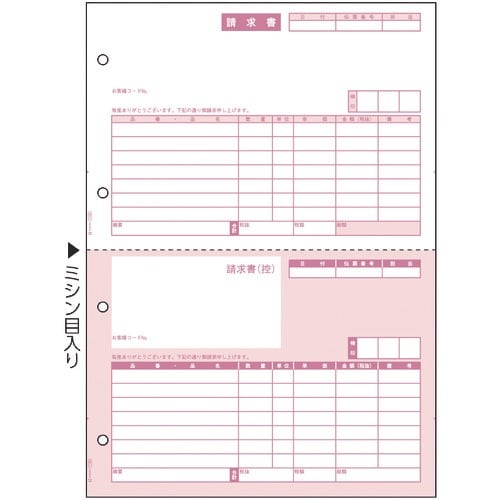 横(mm):210 | 縦(mm):297 | その他仕様:請求書・請求書(控) | 単位:1Pk(500枚)