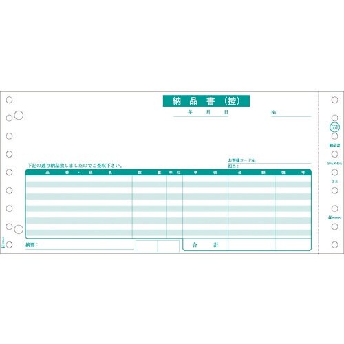 用紙サイズ(mm):9 1・2×4 1・2 | その他仕様:納品書(控)・請求書・納品書 | 単位:1Pk(250枚)