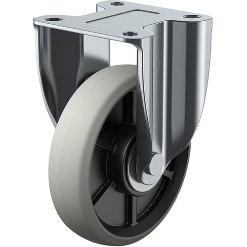 標準的な大型キャスターで、重量物の運搬に数多く使用されています。耐油性、耐摩耗性に優れたウレタン車輪を使用しています。ロールボックスパレット、台車。 |