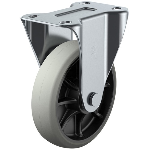 標準的な大型キャスターで、重量物の運搬に数多く使用されています。耐油性、耐摩耗性に優れたウレタン車輪を使用しています。ロールボックスパレット、台車。 |