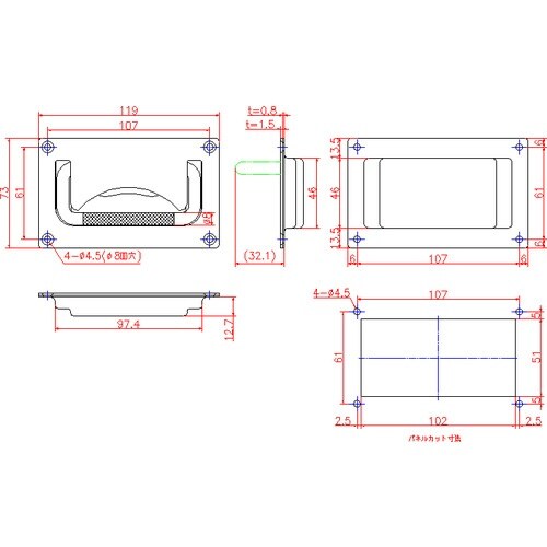 | 注意事項 | ※取付ネジは付属していません。別途ご用意下さい。推奨ネジ:M4皿小ネジ |