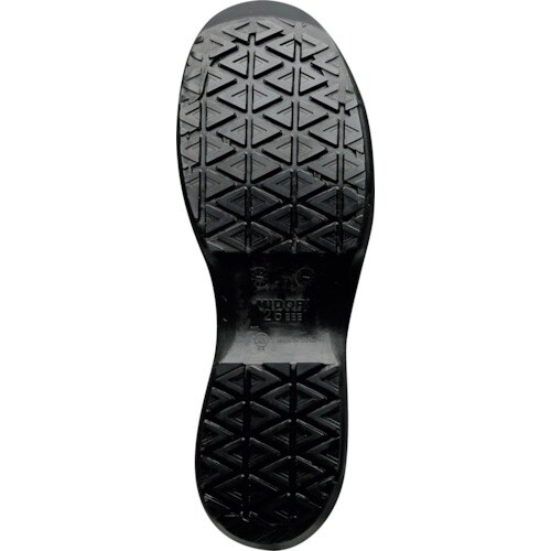 靴底は新型意匠により、全方向への耐滑性が向上し、油や水なども全方向に逃す意匠で、安定したグリップ力を発揮します。つま先を上げ、凸部を設けないつまずき防止設計です。建設業。製造業。運輸業。点検・整備。 |