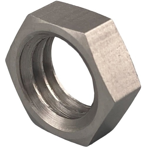 市販品より薄く、コンパクトに切削したステンレス製の六角並目ナットです。厚みは1種ナットより約40%薄く、3種ナットと比較しても更に薄く仕上げてます。 |