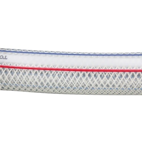 【耐油ホース】一般的な塩ビホースに比べ耐油性が良く硬化しにくい耐圧ブレードホースです。油だけでなく水・薬品・エア等様々な流体で使用可能な多目的耐圧ブレードホースです。 |