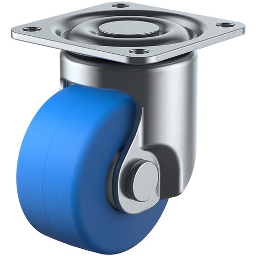 取り付け高さを低く抑えた重荷重用キャスターです。長期間の重荷重による車輪の変形を防げます。 |