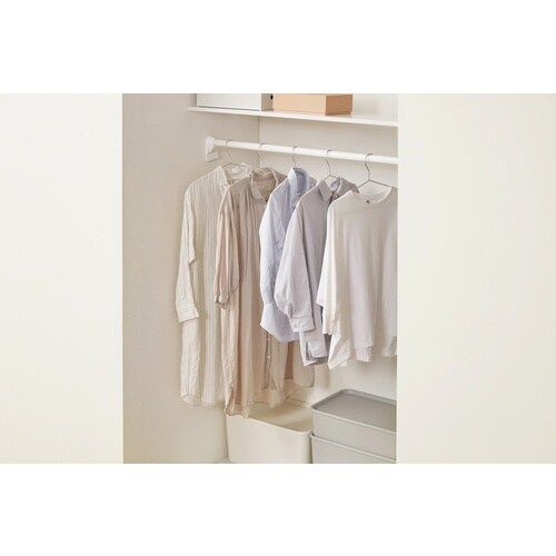 ねじや釘を使わずに壁にしっかりと固定できる伸縮棒です。パイプ先端のL字型圧着部を広くすることで、耐荷重がより強化されました。一人でも簡単に取り付けができるアダプターが1個付いています。 |