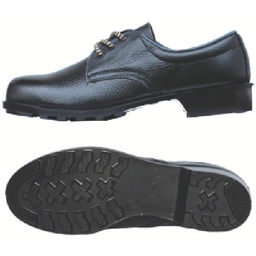 靴底を成形する際にゴム底とアッパーを同時に圧着するため耐久性に優れています。靴底は油や薬品に強い合成ゴム底のためハードな職場に最適です。圧迫や衝撃から足先を守るベーシックな鋼製先芯を使用しています。
