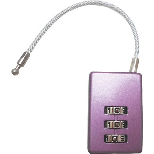 ダイヤル:3桁 | 幅(mm):25 | 色:メタリックパープル | 全長(mm):38 | 本体:亜鉛ダイカスト | ワイヤー:ステンレス・塩ビコー…