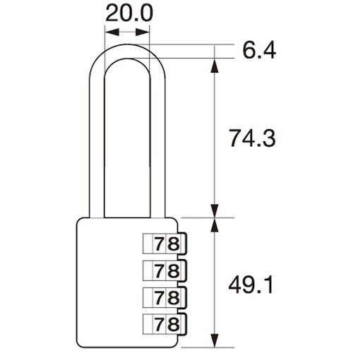 キー番号:番号可変式 | 幅(mm):20.0 | 全長(mm):130 | ツル幅(mm):6.4 | B(mm):74.3 | C(mm):49.…