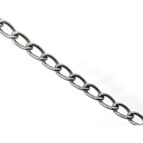 リンクを90度ひねったチェーン、仕上がりの美しさと扱いやすいチェーンです。パーツとの併用で、転倒防止・連結部品として使用できます。 |