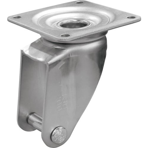 スチール製自在金具です。自在旋回部には軽快な動きの二層ベアリングを装備しています。各種運搬台車に。一般業務用機器に。