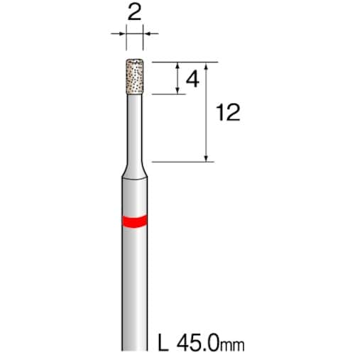 粒度(#):140 | 刃径(mm):2 | 刃長(mm):4 | 軸径(mm):3 | 全長(mm):45 | 最高使用回転数(rpm):92000…