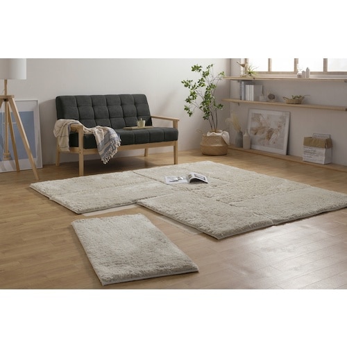 お部屋のサイズや用途に合わせて組み合わせできるジョイントラグです。長さ約20mmのロングパイルと厚さ20mmのウレタンフォームが、床付き感を低減します。寒さ対策に。 |
