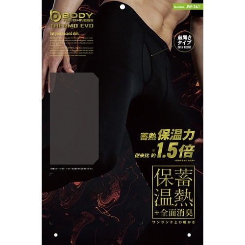 蓄熱粉末素材を練りこんだポリエステル糸が、人体と環境からのエネルギーを吸収し蓄え保温効果をより高めます。肌触りのいい保温機能に優れた微細裏起毛のコンプレッションウェアです。 |