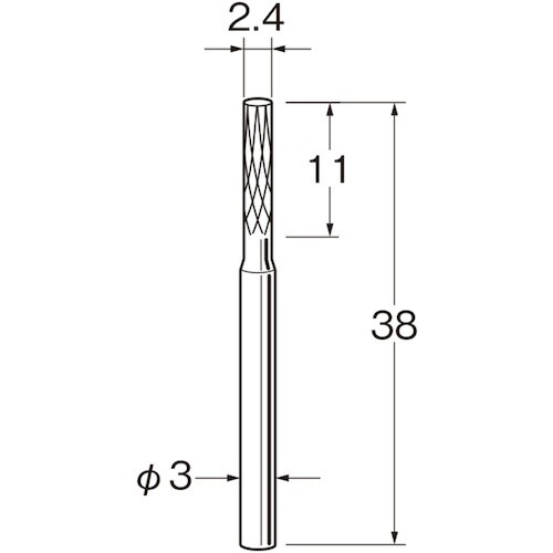 刃径(mm):2.4 | 刃長(mm):11 | 軸径(mm):3 | 全長(mm):38 | 最高使用回転数(rpm):45000 | オール超硬・…