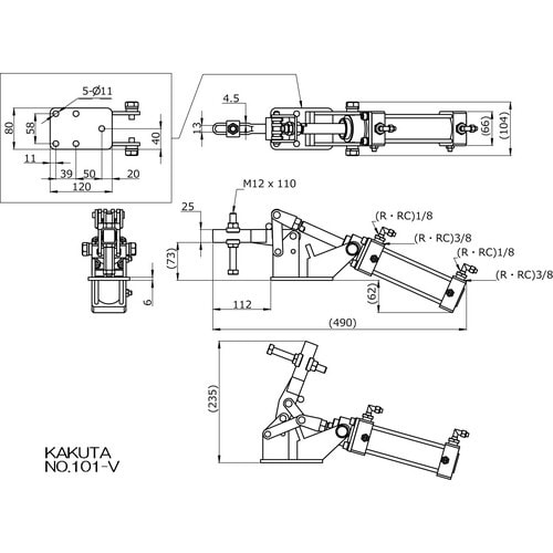 | 注意事項 | ※表記の締圧力は目安です。締圧力はクランプアームの先端へ行くほど弱くなります。衝撃や振動、内圧は、破損の原因になりますのでご注意ください。衝撃や振動、内圧は、破損の原因になりますのでご注意ください。手を挟まないように注意してください。 |
