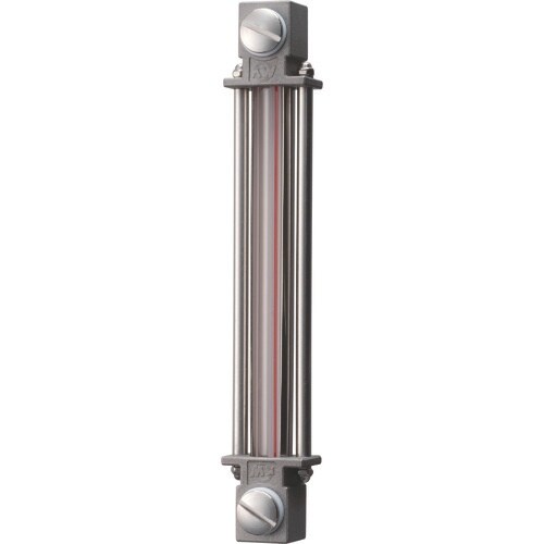 ステンレスとテフロンパッキンの採用で耐圧・耐熱性・耐薬品性に特に優れています。ゲージ管の中央には赤線が入っていて、液体部分はそのレンズ作用で赤線が太く見えるため、遠くからでも液面がはっきり見えます。