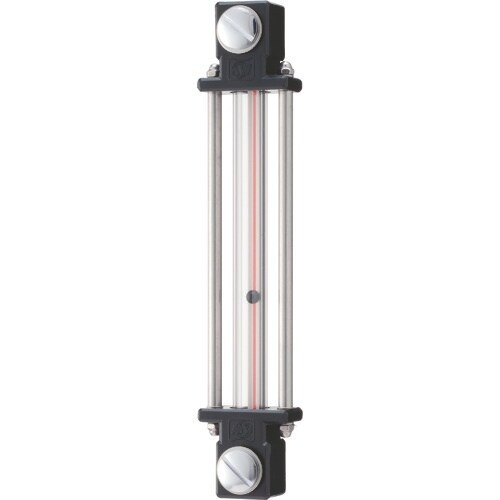 ゲージ管の中央には赤線が入っていて、液体部分はそのレンズ作用で赤線が太く見えるため、遠くからでも液面がはっきり見えます。 |