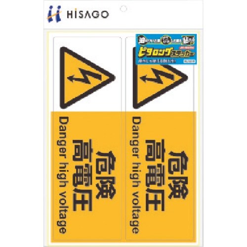 HISAGO ピタロングステッカー 危険高電圧 A4 2面