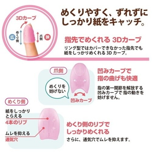 長時間つけていてもムレにくく、事務作業もスムーズです。高い摩擦力の素材、指先でもめくりやすい形状です。