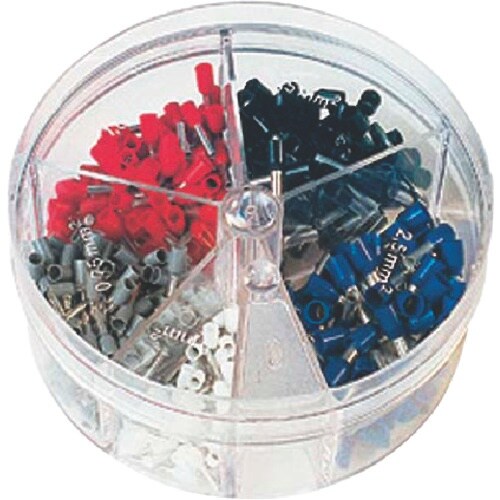 いろいろなサイズが入ったキット品です。ポリプロピレン製の絶縁スリーブの色はドイツの規格(DIN)に準じています。ファネル挿入になっているため電線の挿入が簡単です。差込型端子台等に。 |