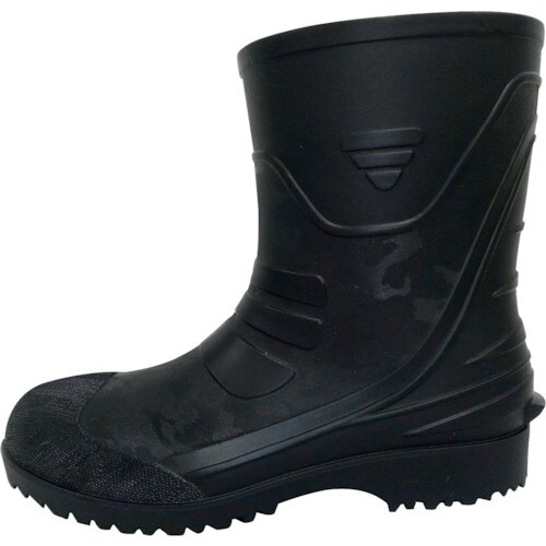 ショート丈の安全PVC長靴です。派手な印象を与えない控えめな迷彩シャドーエンボス加工で足元をおしゃれに演出しています。油を使う現場ではなく、丈夫な長靴が欲しいというお客様の声から生まれた商品です。 |