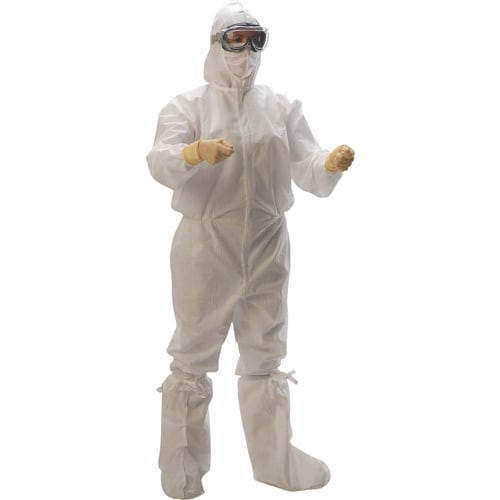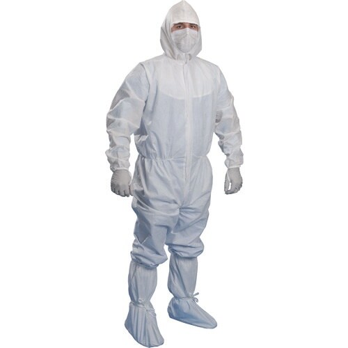 超純水で洗浄後、クラス100でクリーンパックした使い捨て滅菌つなぎ服です。高いフィルター性能を持ちながら、蒸れにくいSMS不織布製です。ウェア表面に触れずに容易に着用できます。