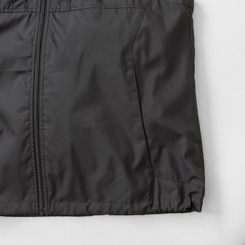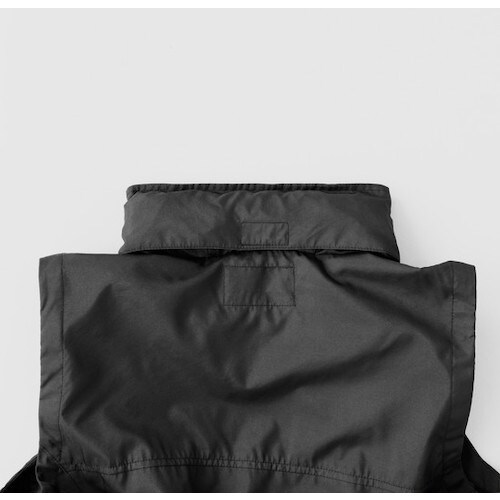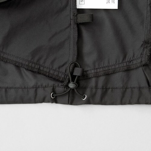 フードの先端部はスタンドカラーに収納でき、見た目もすっきりとしたデザインです。ノンコーティングながらも撥水性に優れ、ソフトな風合いも感じられます。 |