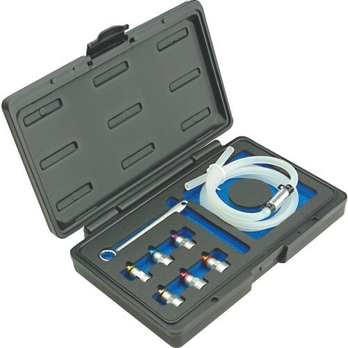 ブリーダープラグに装着する専用ソケットがセットになっています。レンチとソケットの接続部はフリーにできる構造で、レンチの掛け替えがし易く、エアー抜きやフルード交換をスピーディーに行うことができます。 |