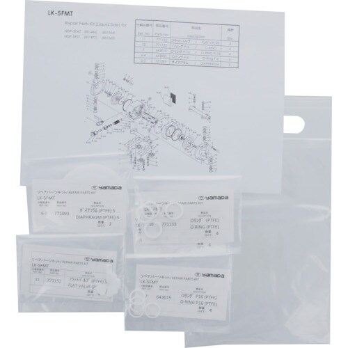 YAMADAエア駆動ダイアフラムポンプNDP−20/P20 BAH/BSHの接液部用のリペアーパーツキットです。YAMADA NDP−20/P20 BAH/BSH接液部用。 |