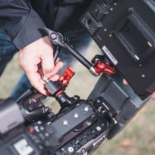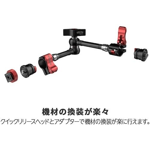 撮影に便利なマジックアームシリーズです。撮影に使用するモニターやライト、マイク等のアクセサリが取り付け可能です。中央にある一つのノブで、自由な角度に調整が可能です。撮影に。 |
