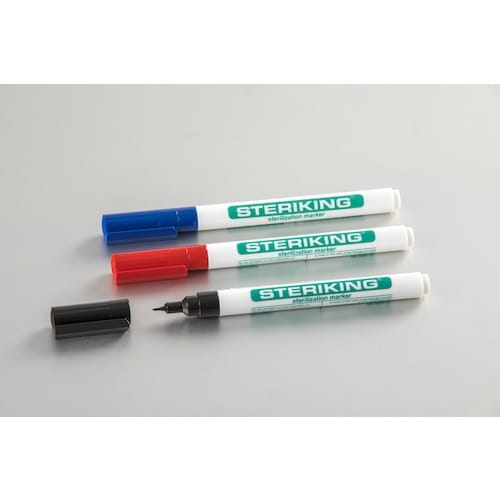 代表的な滅菌方法(オートクレーブ、EOガス、ホルマリン、気化した過酸化水素)に対応しています。速乾性・防水性・耐熱性が高く、ラベルやフィルム素材への記入もスムーズです。線幅:0.75mmです。 |